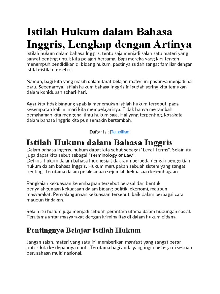 Istilah Hukum Dalam Bahasa Inggris Pdf